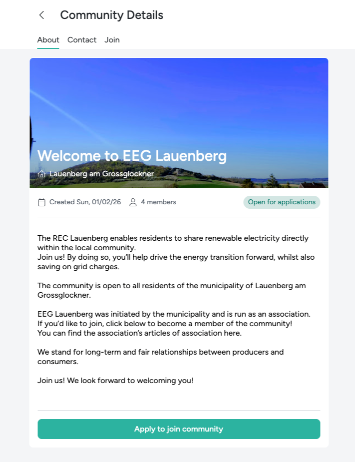 To support this, we are introducing Public Community Profiles and Membership Requests, a new service designed to simplify how new members discover and join energy communities.